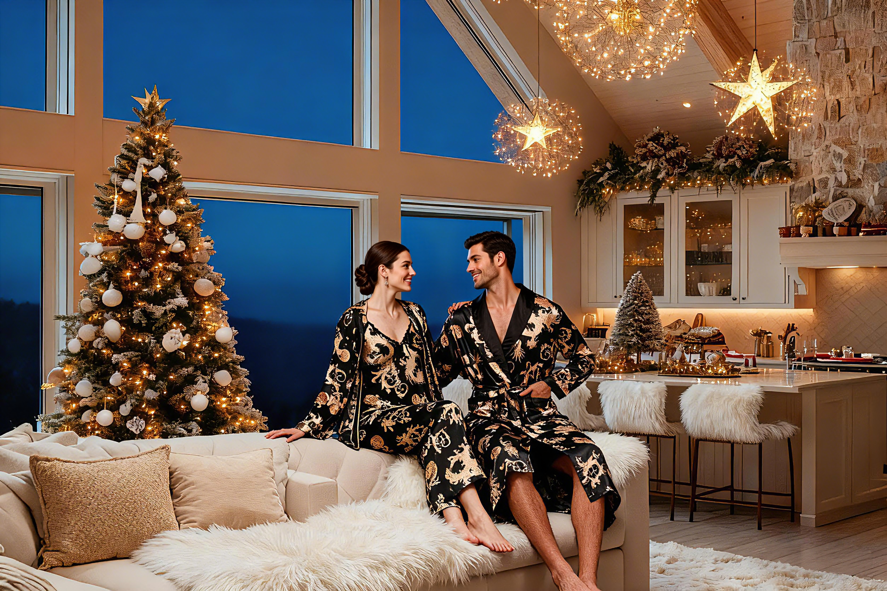 Slip into our silky pajamas and embrace the night.